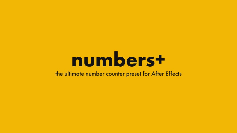 Numbers+ is a preset for After Effects that gives you full control over creating custom counters, timers, clocks, and other number related text with full control over formatting, timing, and animation.